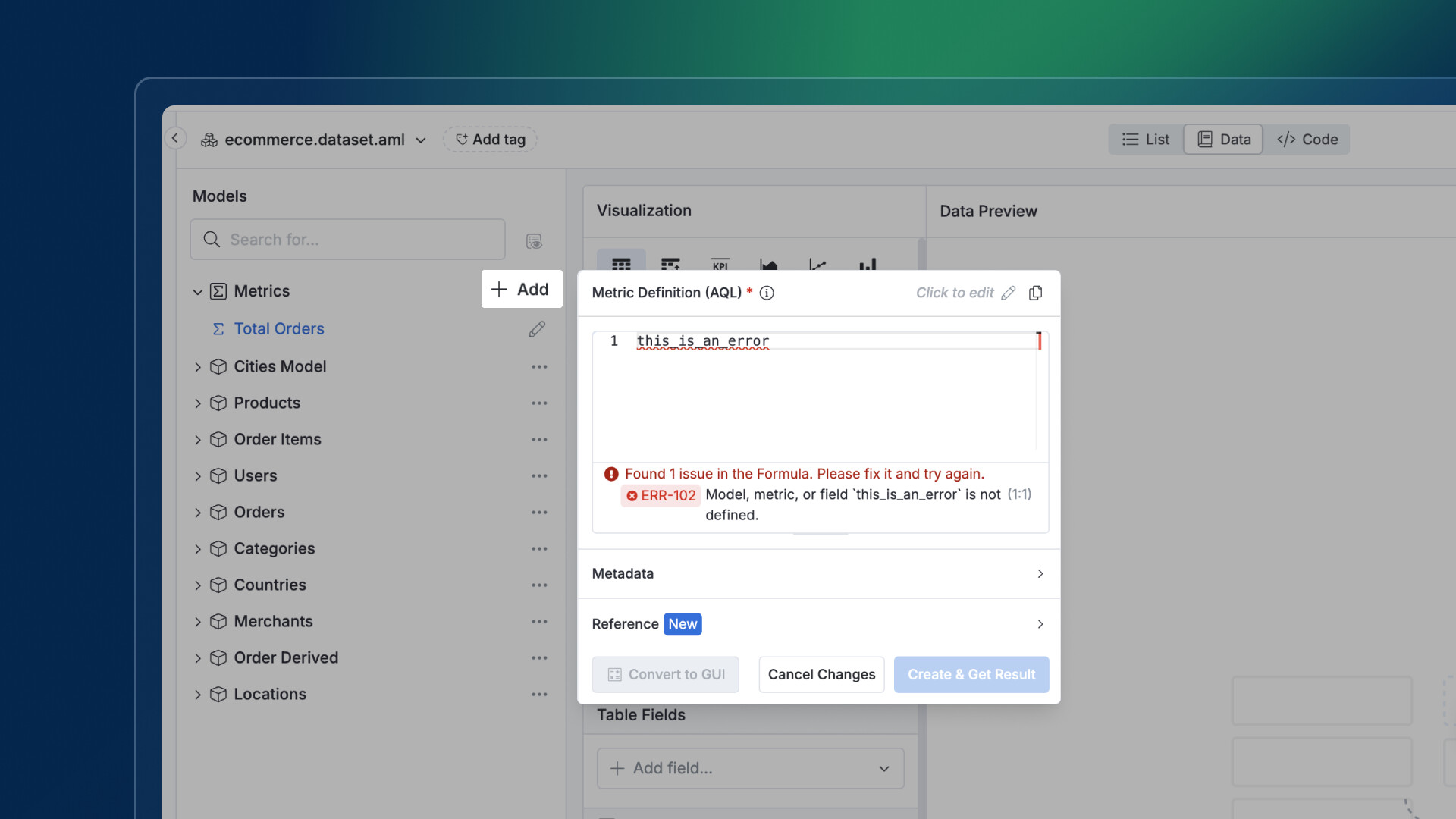 Error in AQL formula - Changed the badge style so errors look less intimidating, and adjusted error messages to overflow instead of being truncated so they’re easier to read and not hidden