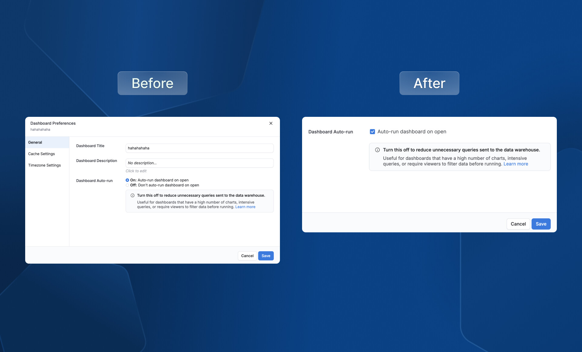 Replaced incorrect radio buttons with checkboxes for Dashboard auto-run settings