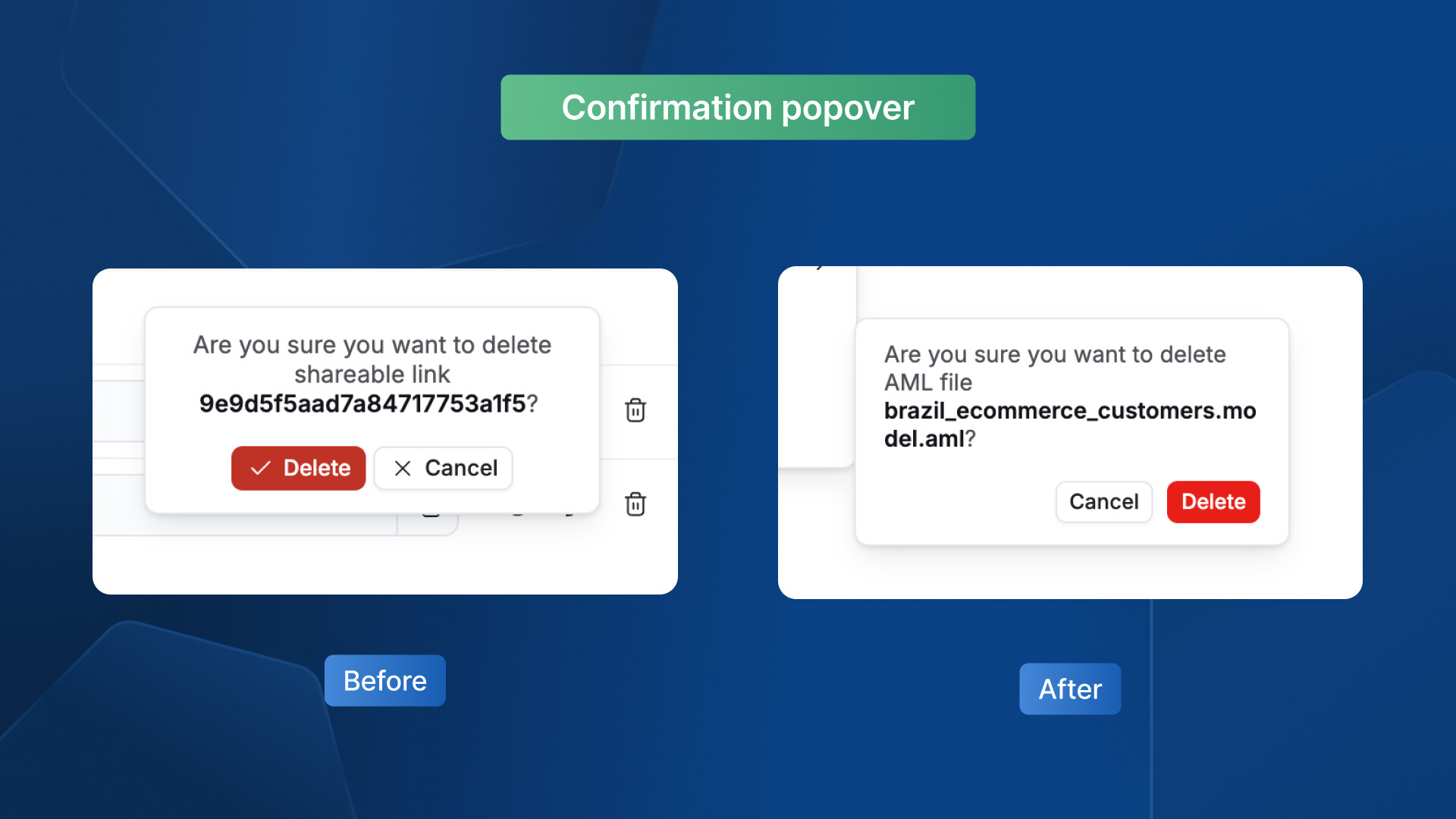 Enhance the delete confirmation pop-up for clarity and consistency