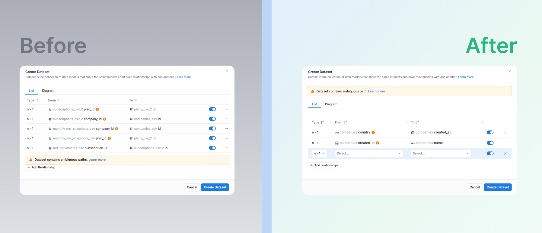 - Edit modal now auto-scrolls to and expands the folder containing the dataset in use — no extra search steps needed