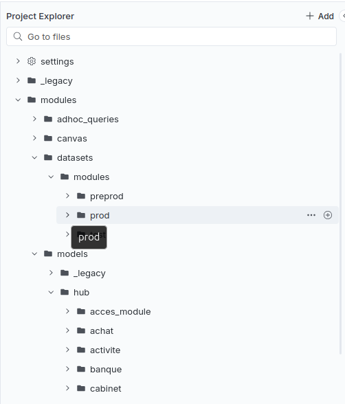 It seems that the problem is that we don’t have a “simple” organization of our project as we have multiple sub modules. In fact as you can see on the picture, our datasets are under the module ‘modules/datasets/modules/prod’ and the models are under multiple modules in the module '‘modules/models/hub/…’ .