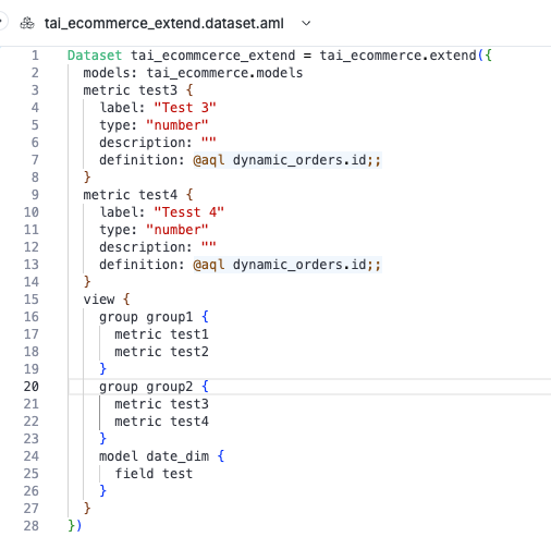 If I understand correctly, you can’t use the main dataset’s models and metrics in the extended dataset’s view, right?