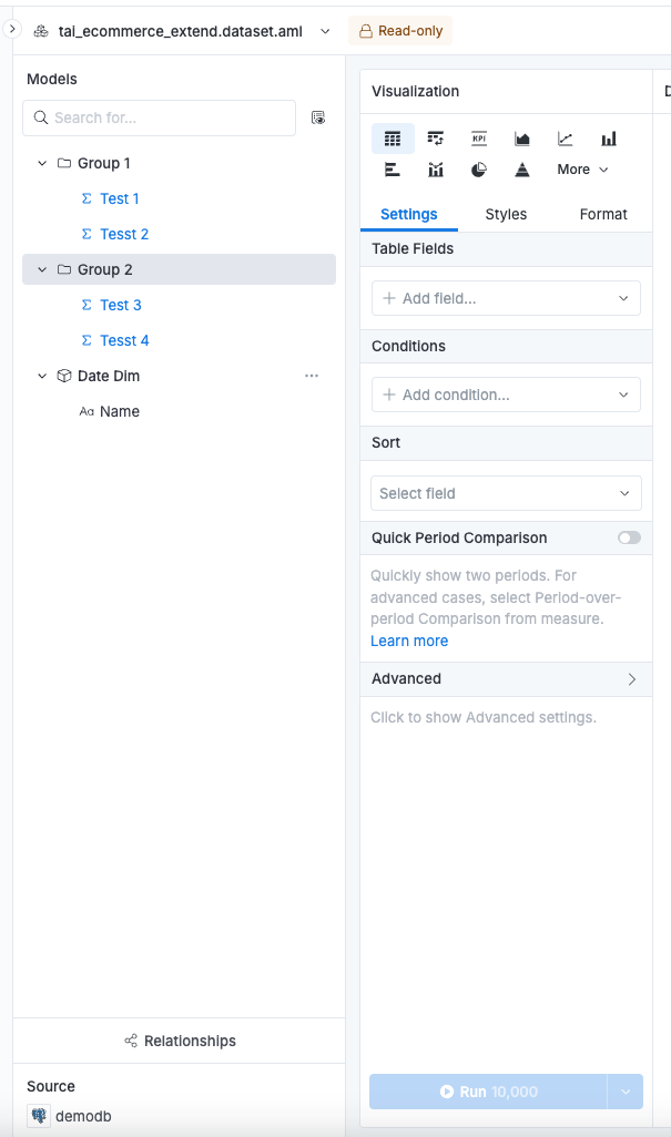 We have done the main dataset + the “product specific” dataset (using extend). We have created a view in the extended dataset, using metrics from the main dataset and the extended one but i don’t manage to show the models or selected models in the view as they are only defined on the main dataset and not in the extended one .