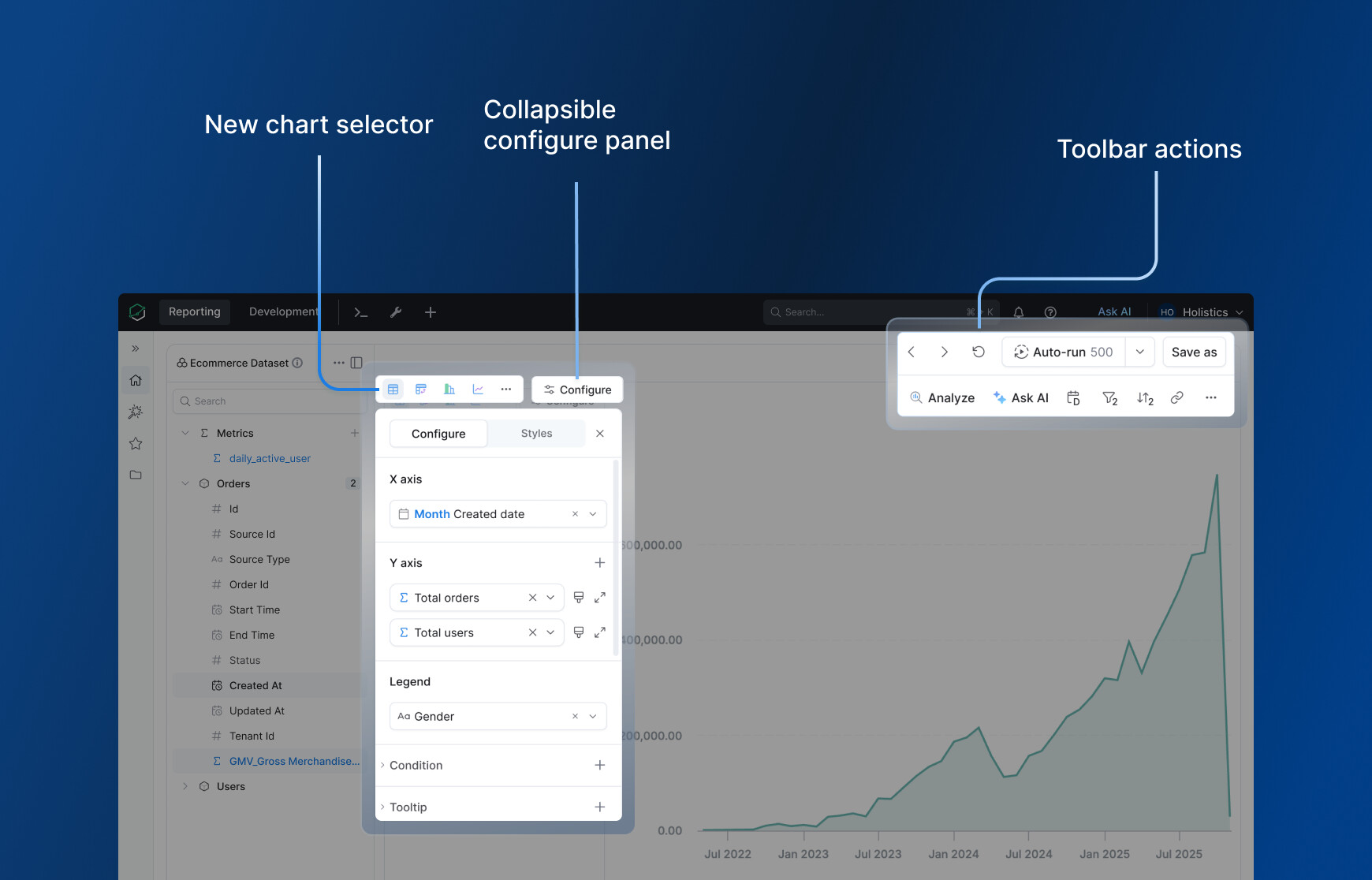 As part of the Holistics Glow-up initiative, we are beginning a major revamp of the Explore interface to be cleaner and easier to use. Our goal is to make data exploration not just powerful, but cleaner and more intuitive.