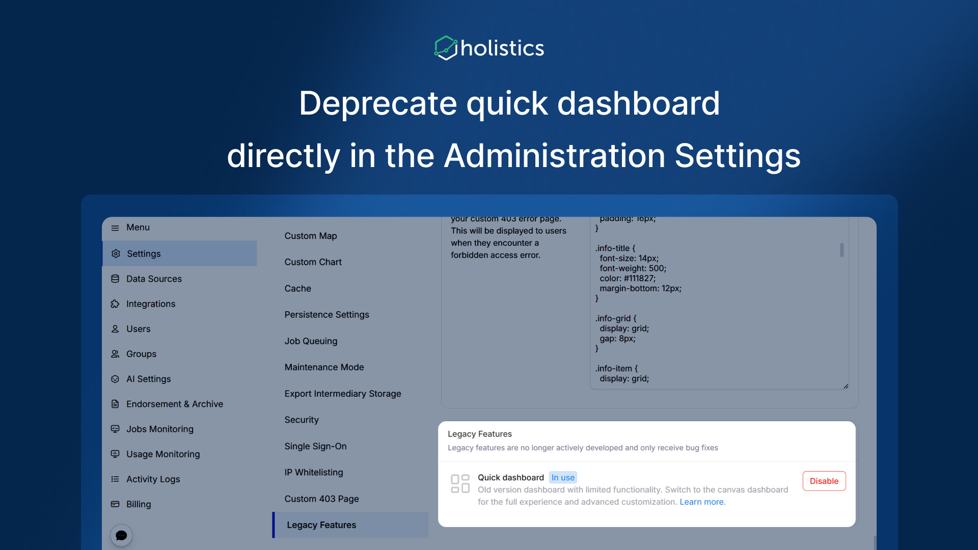 - Or, request to disable the quick dashboard